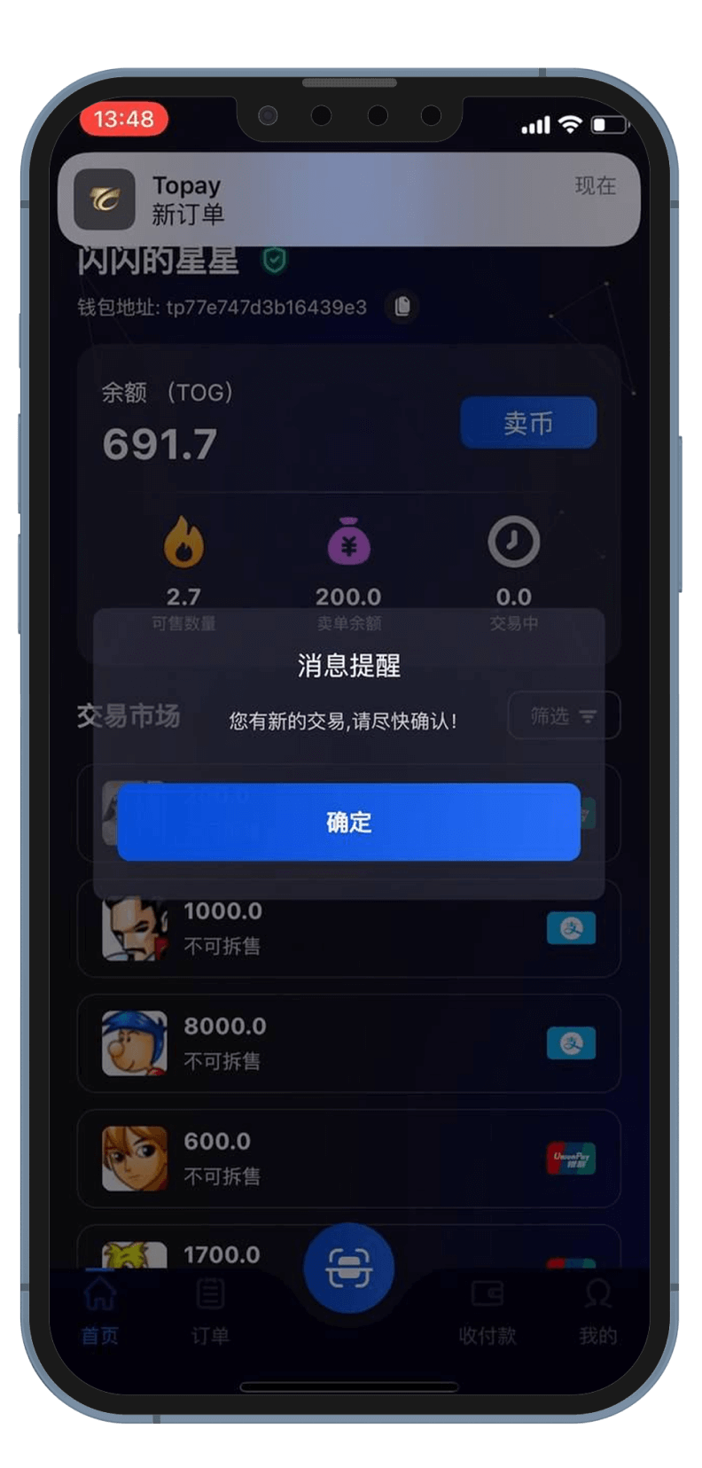 所有买卖交易均在我司APP上进行实时交易,所有私下交易添加好友转账都是骗子,请勿添加! 诈骗手段如下:借支付宝.微信收款二维码风控为由,要求添加好友私下转账,TOpay提醒您,用户交易唯一方式是通过APP系统内获取订单按流程交易,没有“代理充值” 没有“线下客服” 私下交易一旦被骗极有可能无法追回,还请广大用户务必谨慎对待!如有要求私加好友,先行转账等可疑要求,请保留证据联系24小时在线客服进行举报!